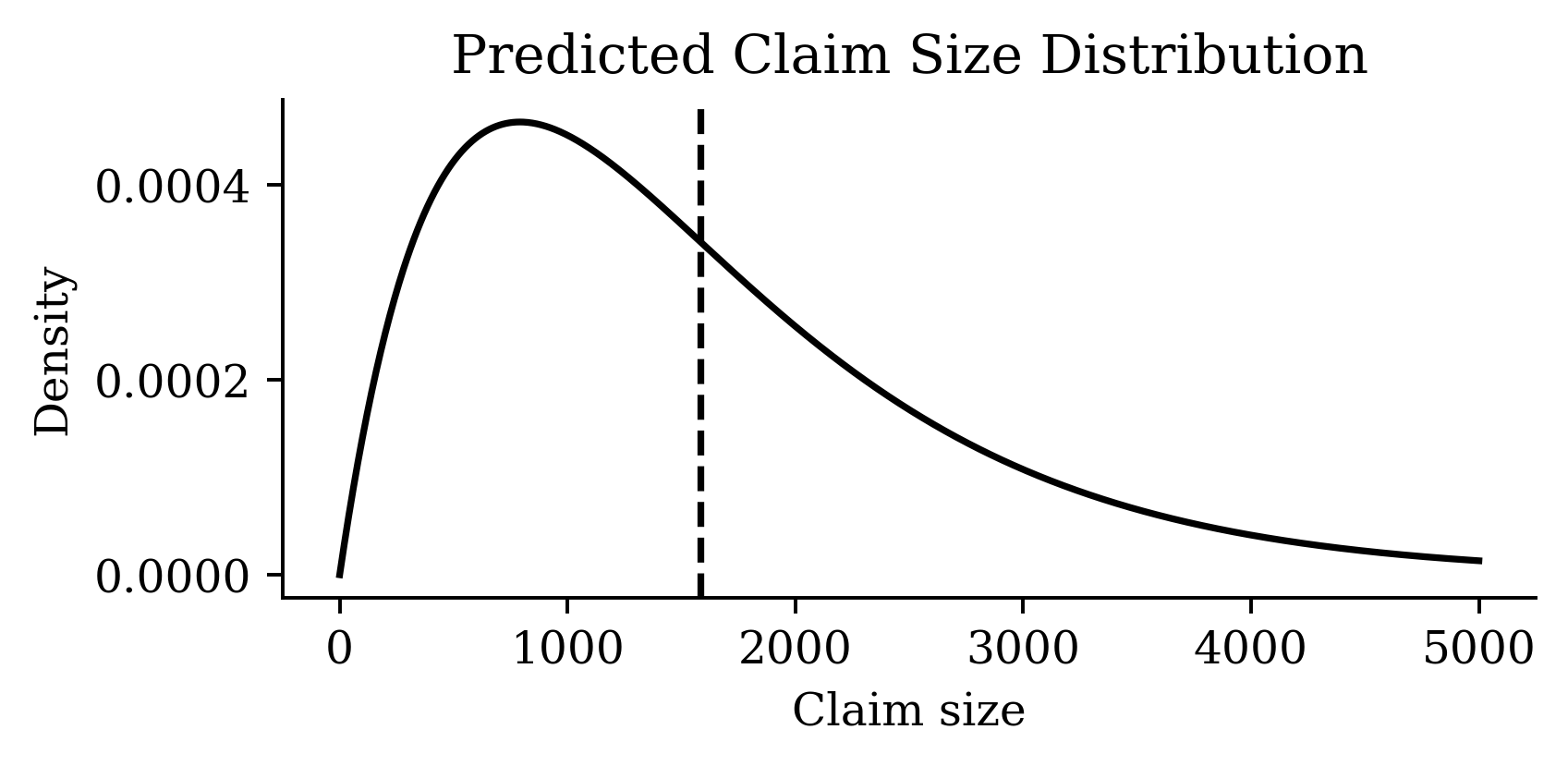 The density of the actual claim amount Y|\boldsymbol{X}=\boldsymbol{x} follows