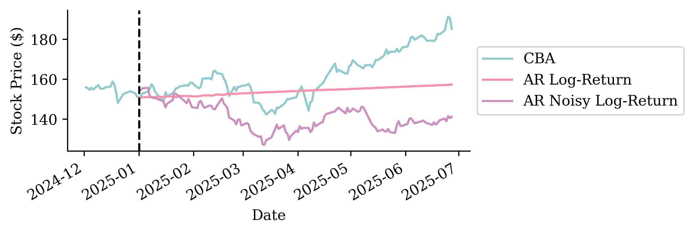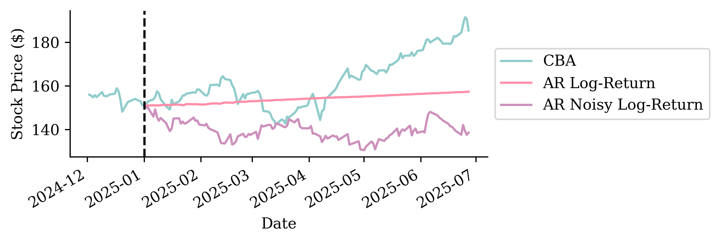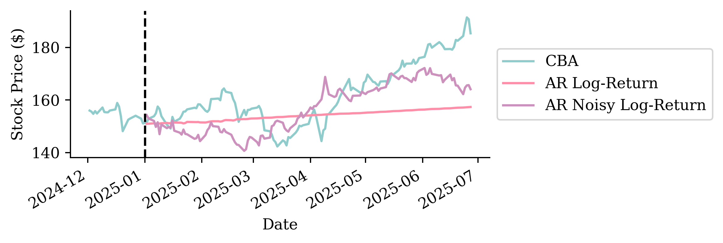 def noisy_autoregressive_forecast(model, X_val, sigma, suppress=False):""" Generate a multi-step forecast using the given model. """ multi_step = pd.Series(index=X_val.index, name="Multi Step")# Initialize the input data for forecasting input_data = X_val.iloc[0].values.reshape(1, -1)for i inrange(len(multi_step)):# Ensure input_data has the correct feature names input_df = pd.DataFrame(input_data, columns=X_val.columns)if suppress: next_value = model.predict(input_df, verbose=0)else: next_value = model.predict(input_df) next_value += np.random.normal(0, sigma) multi_step.iloc[i] = next_value# Append that prediction to the input for the next forecastif i +1<len(multi_step): input_data = np.append(input_data[:, 1:], next_value).reshape(1, -1)return multi_step