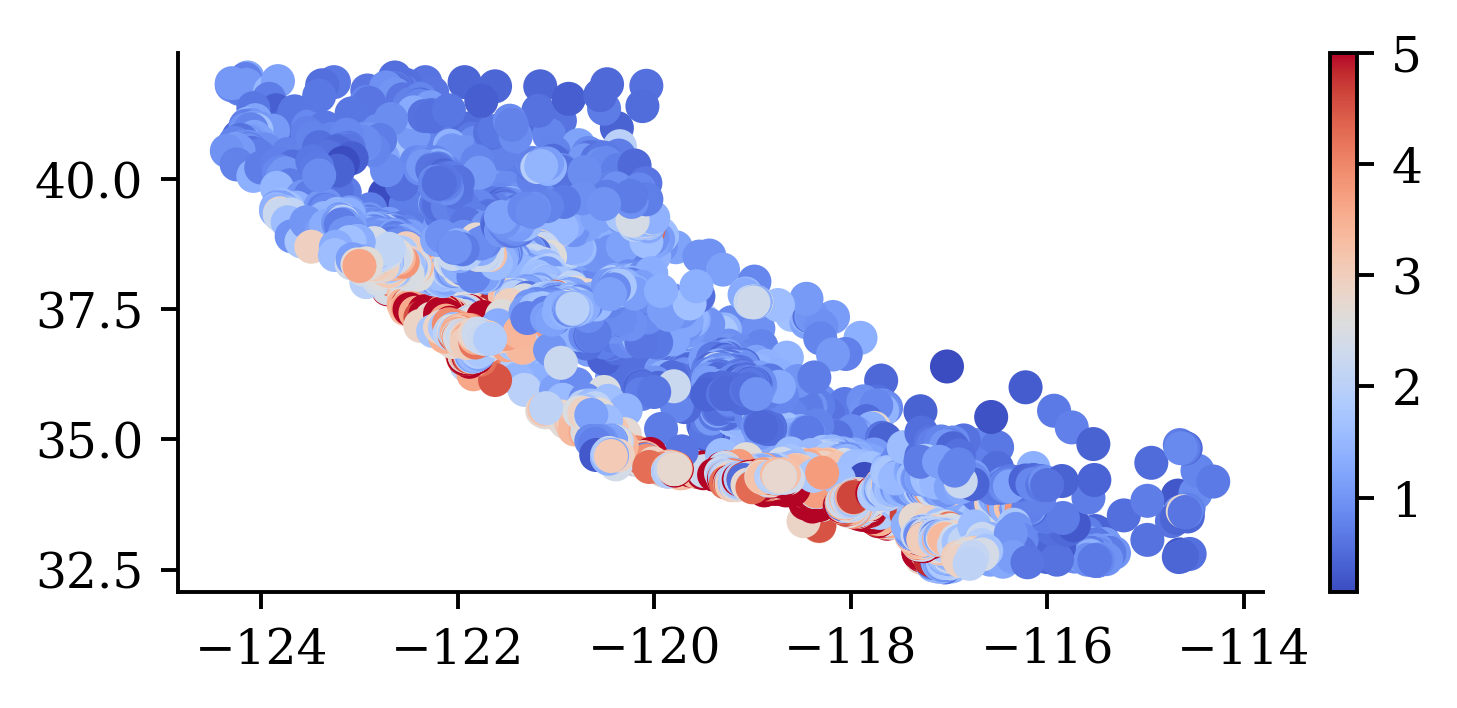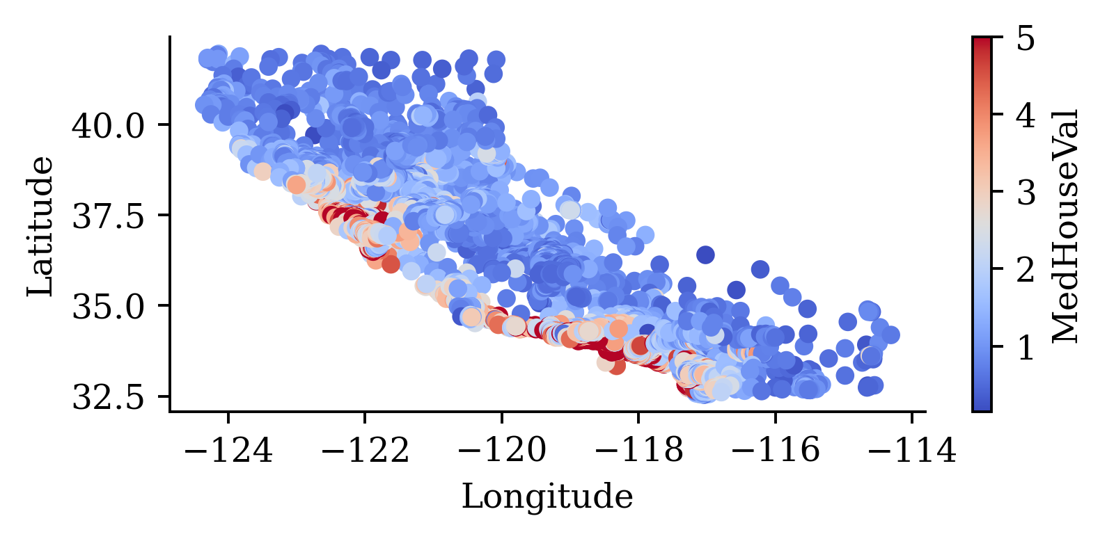 features | MedInc | HouseAge | AveRooms | AveBedrms | Population | AveOccup | Latitude | Longitude | |